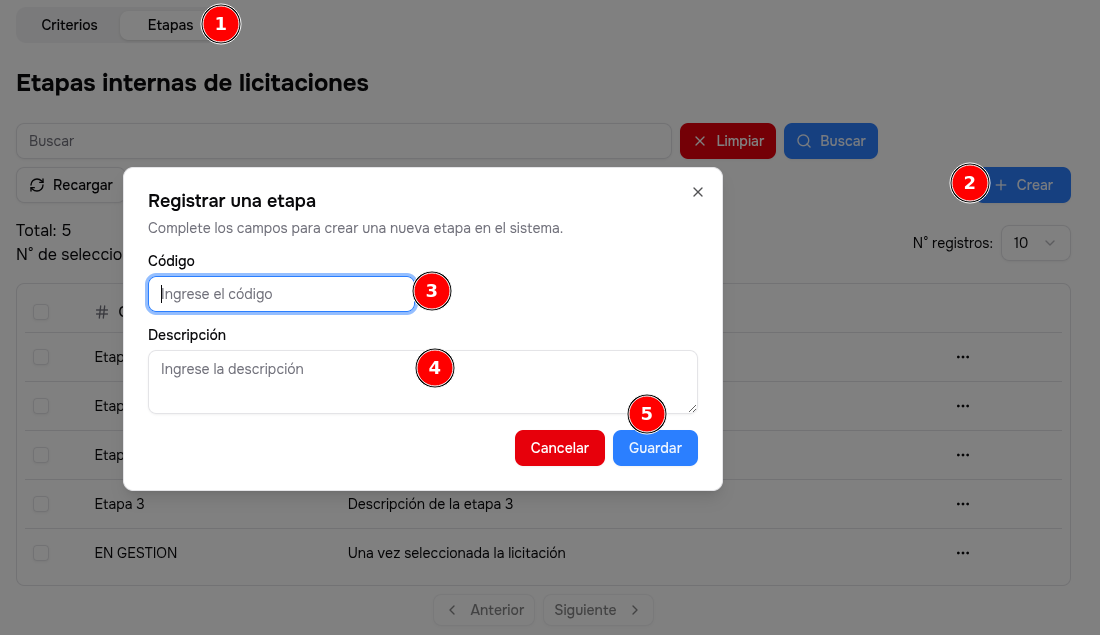 - También puedes registrar una descripción relevante para comprender el concepto de cada etapa